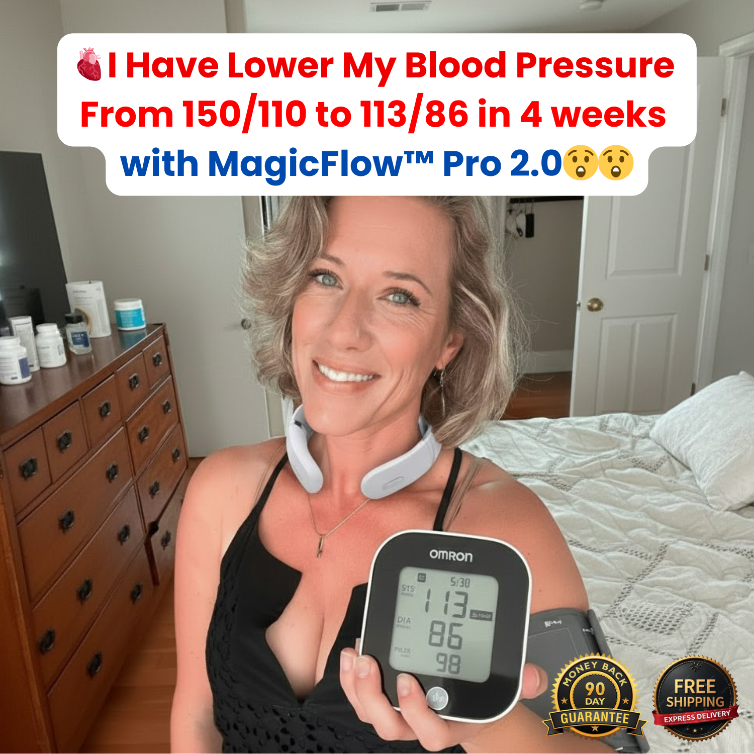 Users share how they went from scary 160/100 readings, constant neck tension & stroke worries… to finally getting blood pressure under control with MagicFlow™ Pro 2.0